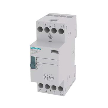 This is Sentron 5TT 4 Pole Installation Contactor 3NO/1NC 25 A 2.2 W manufactured by Siemens. The manufacturer part number is 5TT5031-8. The normal state configuration includes 3no + 1nc. The rated contact current is 25 a. The product 5tt insta, is a highly preferred choice for users. The coil voltage of the product is 24 v ac/dc. Its accurate length is 35mm. It has 4pst pole and throw configuration. The product is available in din rail mount style. Furthermore, the product is 90mm wide. The product comes in 74.6mm depth. It features sentron range. The integrated contact has 400 v ac of voltage rating. It has equipped with 4 poles. The terminal is a screw type.