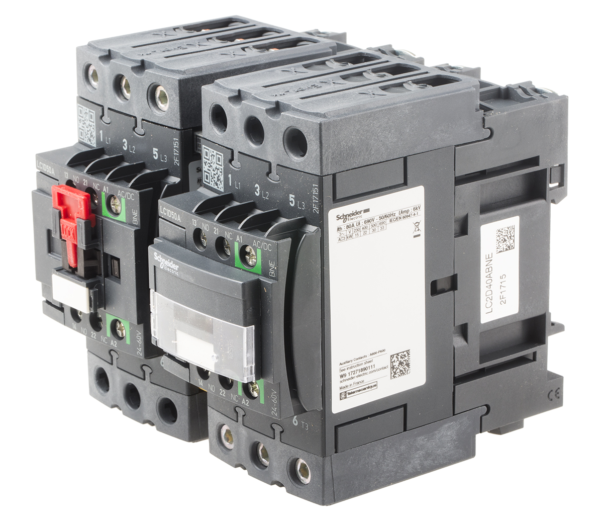 This is TeSys D Green LC2D 3 Pole Reversing Contactor 3NO 40 A 30 kW @ 660 → 690 V ac manufactured by Schneider Electric. The manufacturer part number is LC2D40ABNE. The coil voltage of the product is 24 v ac/dc. It has 3pst pole and throw configuration. Furthermore, the product is 120mm wide. It features tesys d range. It performs basic function of reversing. The rated contact current is 40 a. It has a maximum operating temperature of +60°c. The terminal is a screw type. The normal state configuration includes 3no. Its accurate length is 119mm. Better World Verification Options - green premium. Is it a better world product? yes. The product lc2d, is a highly preferred choice for users. The product comes in 122mm depth. The product is available in din rail mount style. It is composed of [Number of Auxiliary Contacts] auxiliary contacts. Whereas, the minimum operating temperature of the product is -25°c. In addition, it has a standard 1no + 1nc auxiliary contact configuration . Feature 18.5 kw of power rating. The integrated contact has 690 v ac of voltage rating. It has equipped with 3 poles.