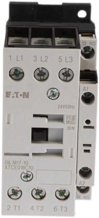 This is xStart DILM 3 Pole Contactor 3NO 18 A 7.5 kW 24 V ac Coil manufactured by Eaton. The manufacturer part number is DILM17-10(24V50HZ). It has a maximum operating temperature of +40°c. The rated contact current is 17 a. The product dilm, is a highly preferred choice for users. Whereas, the minimum operating temperature of the product is -25°c. The coil voltage of the product is 24 v ac. Its accurate length is 85mm. Furthermore, the product is 56mm wide. The product comes in 138mm depth. It is composed of [Number of Auxiliary Contacts] auxiliary contacts. The normal state configuration includes 3no. It features xstart range. Feature 7.5 kw of power rating. The integrated contact has 400 v ac of voltage rating. It has equipped with 3 poles. The terminal is a screw type.