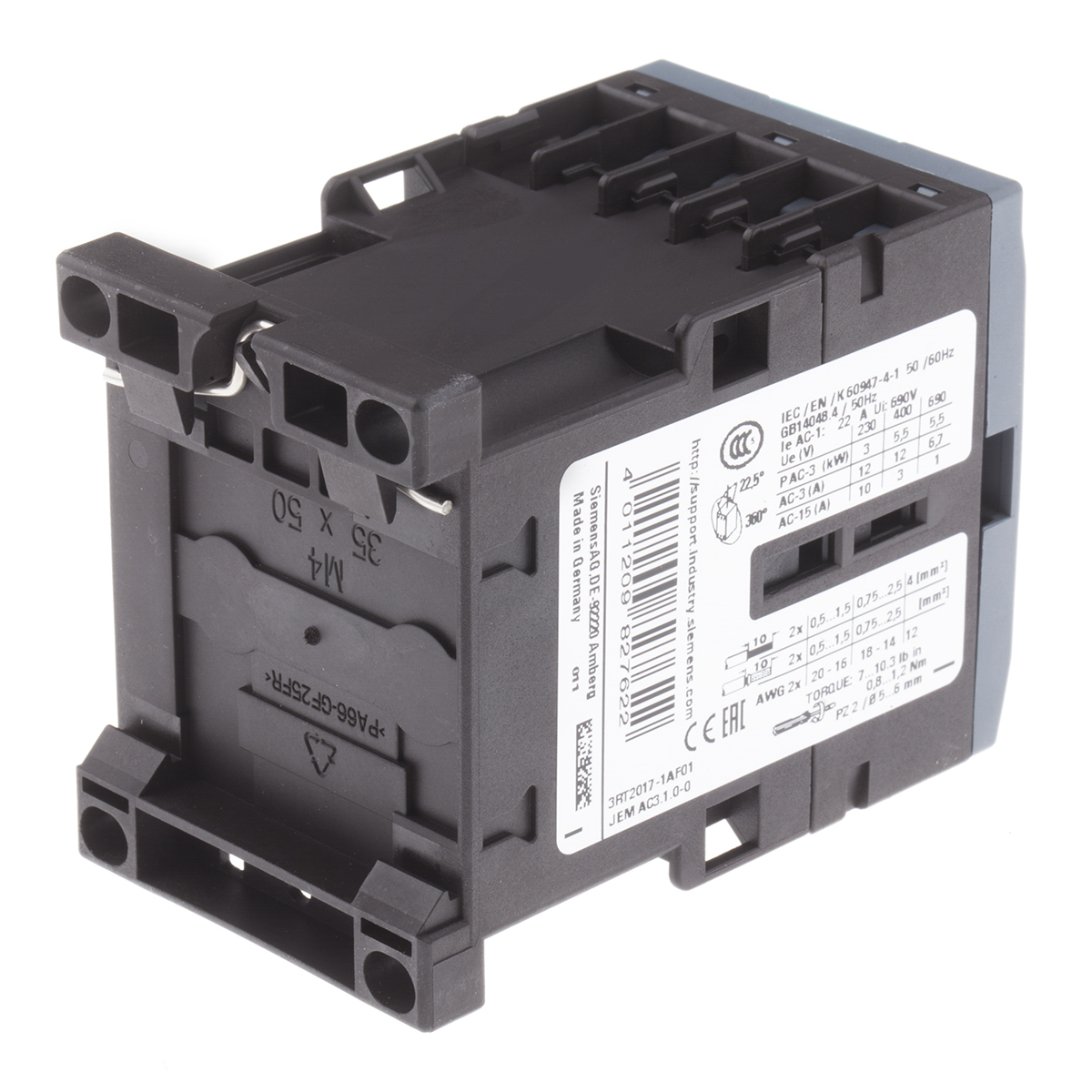 The Siemens 3RT2017-1AF01 3-pole contactor is designed for reliability and performance in UK industrial and commercial electrical systems. Featuring three normally open (3NO) contacts, a robust 12A AC3 current rating, and a powerful 5.5kW capacity, this contactor ensures efficient switching and long-lasting durability. Its 110V AC coil supports versatile control in automation panels, making it ideal for motor control and other heavy-duty switching applications. Siemens’ trusted engineering guarantees seamless integration and dependable protection for your critical electrical infrastructure.