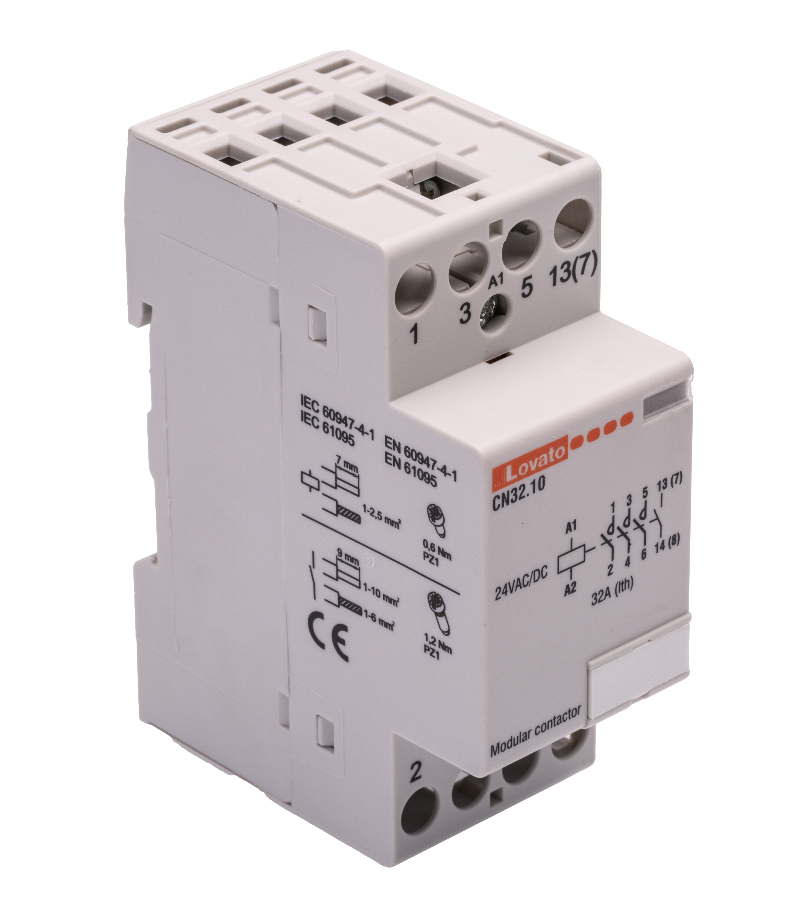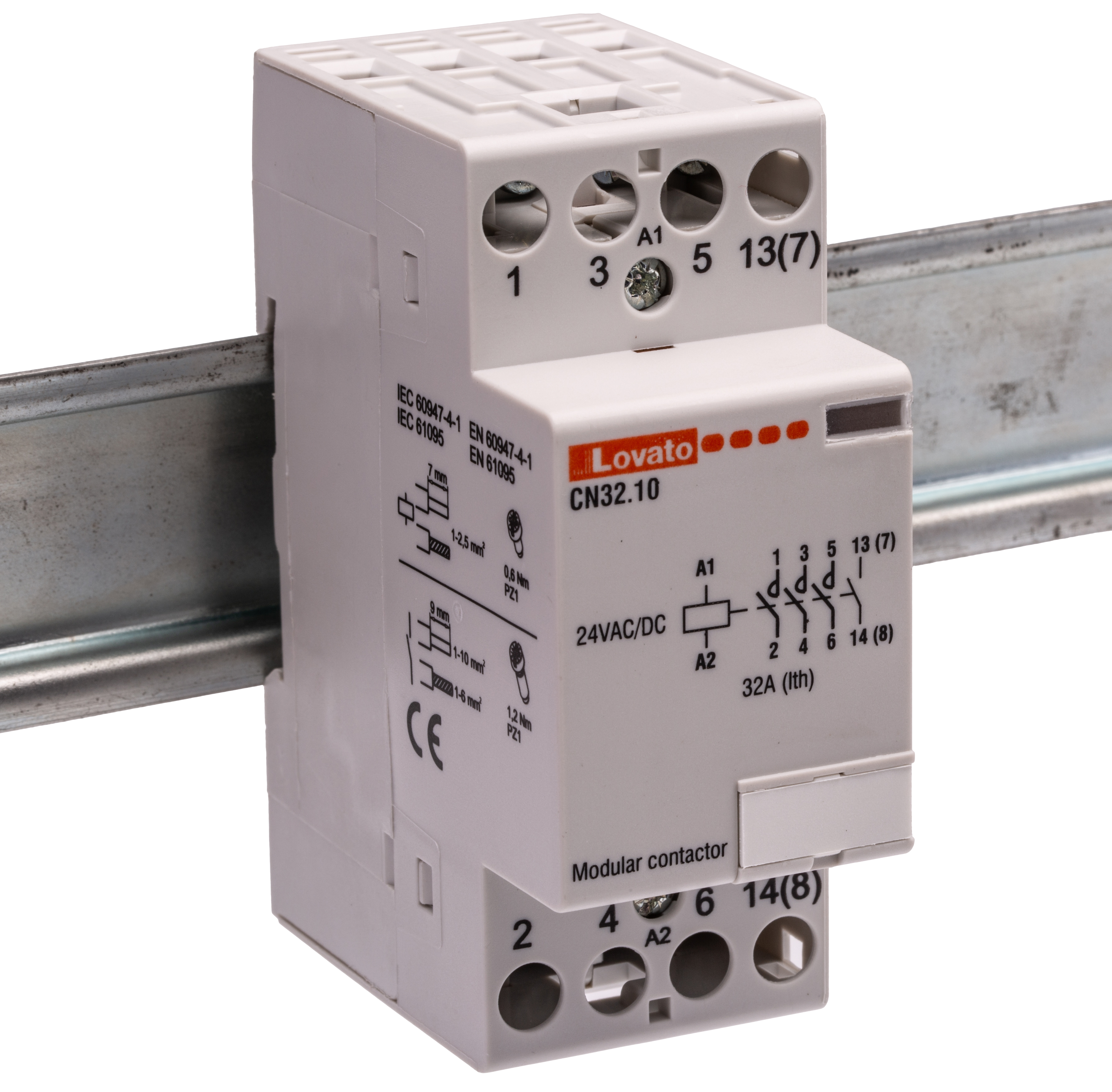 This is MODULAR CONT. 2M 32A AC1 4P 24V manufactured by Lovato. The manufacturer part number is CN3210024. Whereas, the minimum operating temperature of the product is -5°c. The rated contact current is 32 a. It has a maximum operating temperature of +55°c. The coil voltage of the product is 24 v ac/dc. Its accurate length is 35mm. It has 4pst pole and throw configuration. The product is available in din rail mount style. Furthermore, the product is 65mm wide. The product comes in 85mm depth. The normal state configuration includes 4no. The integrated contact has 110 v ac of voltage rating. It has equipped with 4 poles. The terminal is a screw type.