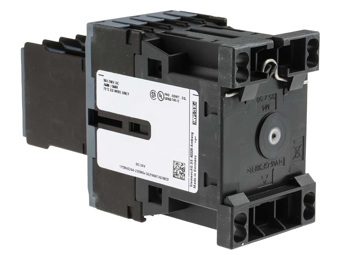 This is Contactor Relay - 4NO/4NC 10 A Contact Rating 4 W 24 V dc 8P manufactured by Siemens. The manufacturer part number is 3RH2244-2BB40. The rated contact current is 10 a. Whereas, the minimum operating temperature of the product is -25°c. It has a typical 10a load current. It has 24 vdc control voltage . The product 3rh2, is a highly preferred choice for users. Additionally, it can withstand 690v ac load voltage . The coil voltage of the product is 24 v dc. Its accurate length is 70mm. The product is available in din rail mount style. Furthermore, the product is 45mm wide. The product comes in 121mm depth. It is composed of [Number of Auxiliary Contacts] auxiliary contacts. The normal state configuration includes 4no + 4nc. It features sirius range. In addition, it has a standard 4no + 4nc auxiliary contact configuration . The integrated contact has 690 v ac of voltage rating. It has a maximum operating temperature of +60°c. The terminal is a spring load type.
