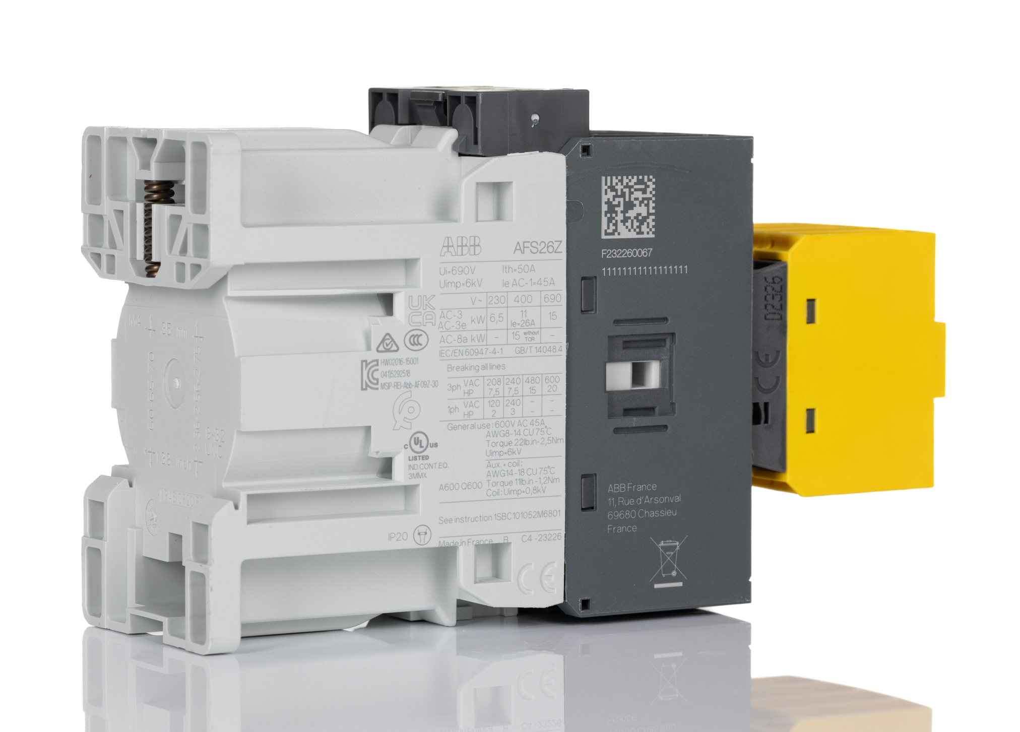 This is AFS 3 Pole Safety Contactor - 45 A 24 V dc Coil 3NO manufactured by ABB Jokab. The manufacturer part number is 1SBL236082R3022 AFS26Z-30-22-30. It performs basic function of safety. It has a maximum operating temperature of +60 °c, +70°c. The rated contact current is 45 a. The product afs, is a highly preferred choice for users. It has 100 → 250 v control voltage . The coil voltage of the product is 24 v dc. Its accurate length is 45mm. It has 3p pole and throw configuration. The product is available in din rail mount style. Furthermore, the product is 119.5mm wide. The product comes in 80mm depth. It is composed of [Number of Auxiliary Contacts] auxiliary contacts. The normal state configuration includes 3no. Whereas, the minimum operating temperature of the product is -40 °c, -25°c. It features afs26z-30-22-30 range. In addition, it has a standard 2no + 2nc auxiliary contact configuration . Feature 11 kw, 15 kw of power rating. The integrated contact has 600 v ac of voltage rating. It has equipped with 3 poles. The terminal is a screw type.
