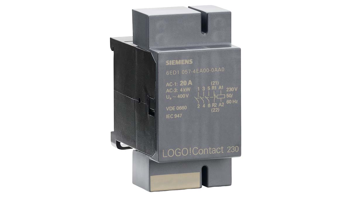 This is LOGO! 3 Pole Contactor - 20 A 230 V ac Coil 3NO + 1NC 4 kW manufactured by Siemens. The manufacturer part number is 6ED1057-4EA00-0AA0. The normal state configuration includes 3no + 1nc. The rated contact current is 20 a. The product logo, is a highly preferred choice for users. The coil voltage of the product is 230 v ac. Its accurate length is 72mm. Furthermore, the product is 36mm wide. The product comes in 55mm depth. It features logo! range. Feature 4 kw of power rating. It has a maximum operating temperature of +55°c. It has equipped with 3 poles. Whereas, the minimum operating temperature of the product is -25°c.