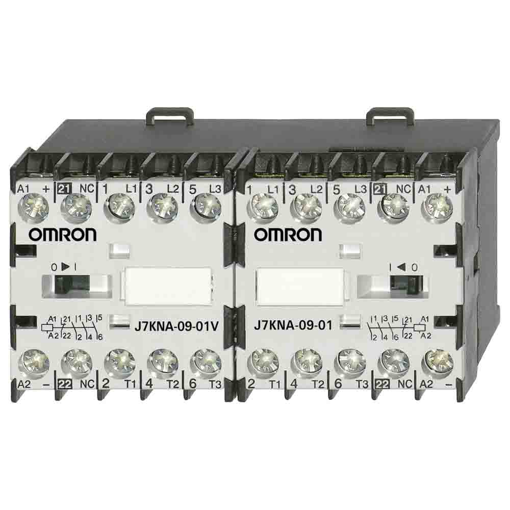 This is 3 Pole Reversing Contactor - 9 A 230 VAC Coil 4NC 4 kW manufactured by Omron. The manufacturer part number is J7KNA-09-01R 24VS. It performs basic function of reversing. The rated contact current is 9 a. The product j7kna, is a highly preferred choice for users. The coil voltage of the product is 230 vac. It is composed of [Number of Auxiliary Contacts] auxiliary contacts. The normal state configuration includes 3no. In addition, it has a standard 1nc auxiliary contact configuration . Feature 4 kw of power rating. It has equipped with 3 poles.