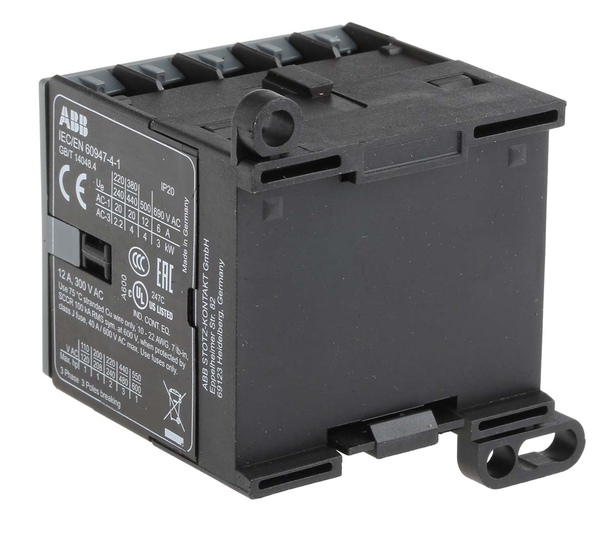This is B Range B6 3 Pole Contactor - 9 A 24 V ac Coil 3NO 4 kW manufactured by ABB. The manufacturer part number is GJL1211001R0101 B6-30-10-01. It has a maximum operating temperature of +55°c. The rated contact current is 9 a. The product b, is a highly preferred choice for users. It has 24 v ac control voltage . The coil voltage of the product is 24 v ac. Its accurate length is 57.5mm. The product is available in wall mount style. Furthermore, the product is 52.5mm wide. The product comes in 46.5mm depth. It is composed of [Number of Auxiliary Contacts] auxiliary contacts. The normal state configuration includes 3no. Whereas, the minimum operating temperature of the product is -25°c. It features b6-30-10-01 range. In addition, it has a standard 1no auxiliary contact configuration . Feature 4 kw of power rating. The integrated contact has 690 v ac of voltage rating. It has equipped with 3 poles. The terminal is a screw type.