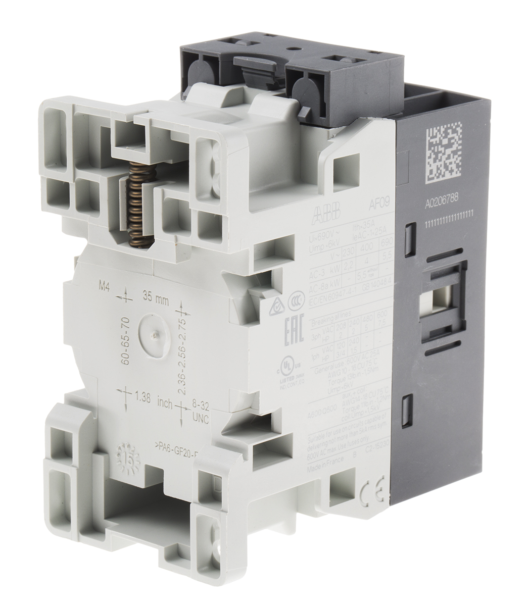 This is AF Range AF09 3 Pole Contactor - 7 A 230 V ac Coil 3NO 4 kW manufactured by ABB. The manufacturer part number is 1SBL137001R1310 AF09-30-10-13. It has a maximum operating temperature of +70°c. The rated contact current is 25 a. The product af, is a highly preferred choice for users. Whereas, the minimum operating temperature of the product is -40°c. The coil voltage of the product is 230 v ac. Its accurate length is 86mm. Furthermore, the product is 45mm wide. The product comes in 77mm depth. It is composed of [Number of Auxiliary Contacts] auxiliary contacts. The normal state configuration includes 3no. It features af09 range. Feature 4 kw of power rating. The integrated contact has 690 v ac of voltage rating. It has equipped with 3 poles. The terminal is a screw type.