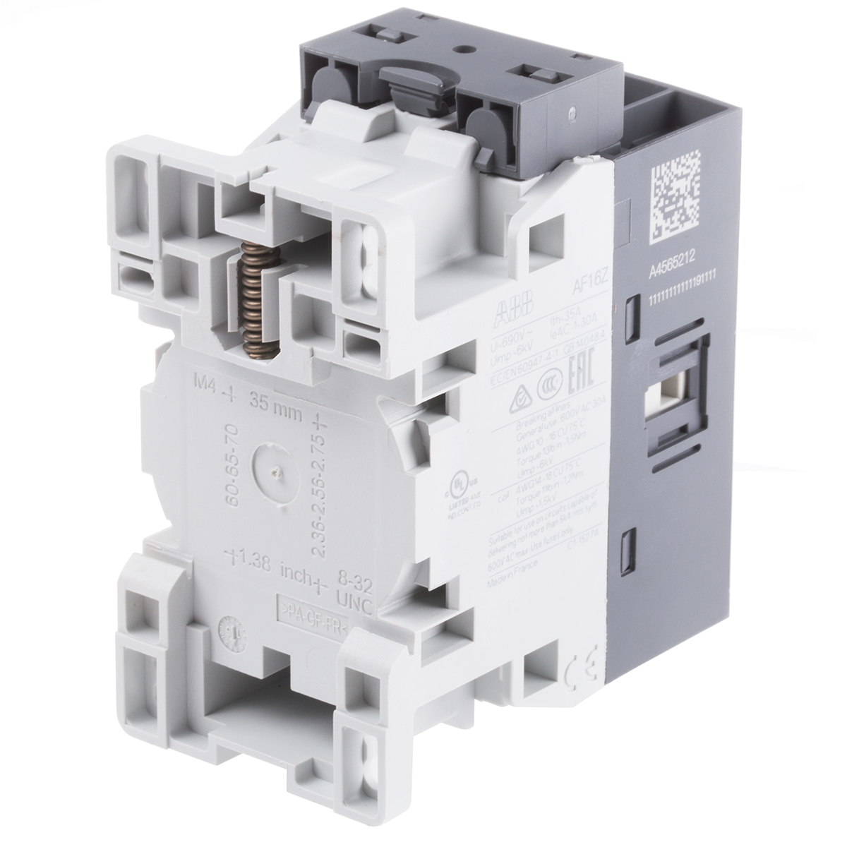 This is AF Range AF16 4 Pole Contactor - 30 A 110 V ac/dc Coil 2NO + 2NC 7.5 kW manufactured by ABB. The manufacturer part number is 1SBL177501R1200 AF16-22-00-12. It has a maximum operating temperature of +70°c. The rated contact current is 30 a. The product af, is a highly preferred choice for users. Whereas, the minimum operating temperature of the product is -40°c. The coil voltage of the product is 110 v ac/dc. Its accurate length is 80mm. Furthermore, the product is 45mm wide. The product comes in 77mm depth. The normal state configuration includes 2no + 2nc. It features af16 range. Feature 7.5 kw of power rating. The integrated contact has 690 v ac of voltage rating. It has equipped with 4 poles. The terminal is a screw type.