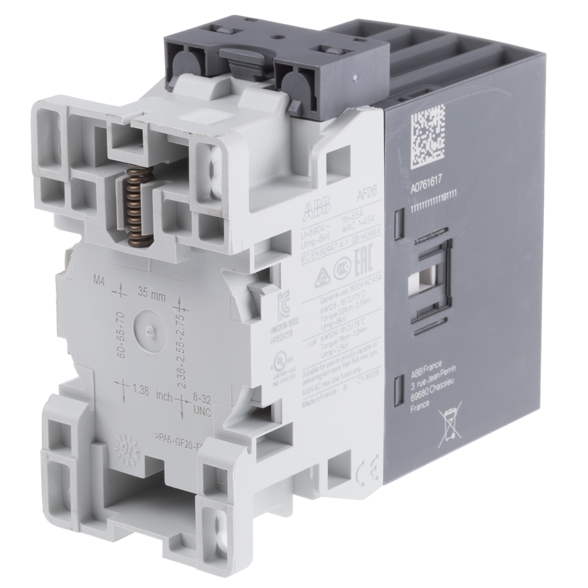 This is AF Range AF26 4 Pole Contactor - 45 A 24 V ac/dc Coil 4NO 11 kW manufactured by ABB. The manufacturer part number is 1SBL237201R1100 AF26-40-00-11. It has a maximum operating temperature of +70°c. The rated contact current is 45 a. The product af, is a highly preferred choice for users. Whereas, the minimum operating temperature of the product is -40°c. The coil voltage of the product is 24 v ac/dc. Its accurate length is 86mm. Furthermore, the product is 45mm wide. The product comes in 101mm depth. It is composed of [Number of Auxiliary Contacts] auxiliary contacts. The normal state configuration includes 4no. It features af26-40-00-11 range. Feature 11 kw of power rating. The integrated contact has 690 v ac of voltage rating. It has equipped with 4 poles. The terminal is a screw type.