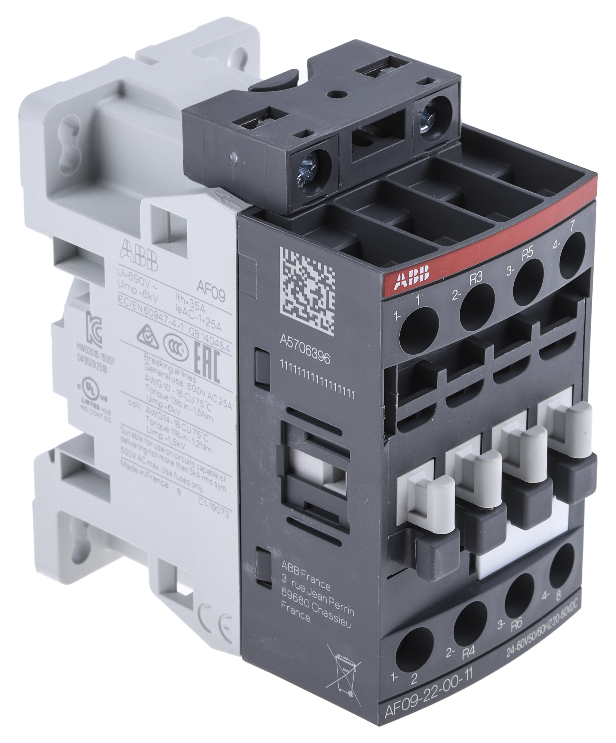 This is AF Range AF09 4 Pole Contactor - 25 A 24 V ac/dc Coil 2NO + 2NC 4 kW manufactured by ABB. The manufacturer part number is 1SBL137501R1100 AF09-22-00-11. It has a maximum operating temperature of +70°c. The rated contact current is 25 a. The product af, is a highly preferred choice for users. Whereas, the minimum operating temperature of the product is -40°c. The coil voltage of the product is 24 v ac/dc. Its accurate length is 86mm. Furthermore, the product is 45mm wide. The product comes in 77mm depth. It is composed of [Number of Auxiliary Contacts] auxiliary contacts. The normal state configuration includes 2no + 2nc. It features af09-22-00-11 range. Feature 4 kw of power rating. The integrated contact has 690 v ac of voltage rating. It has equipped with 4 poles. The terminal is a screw type.