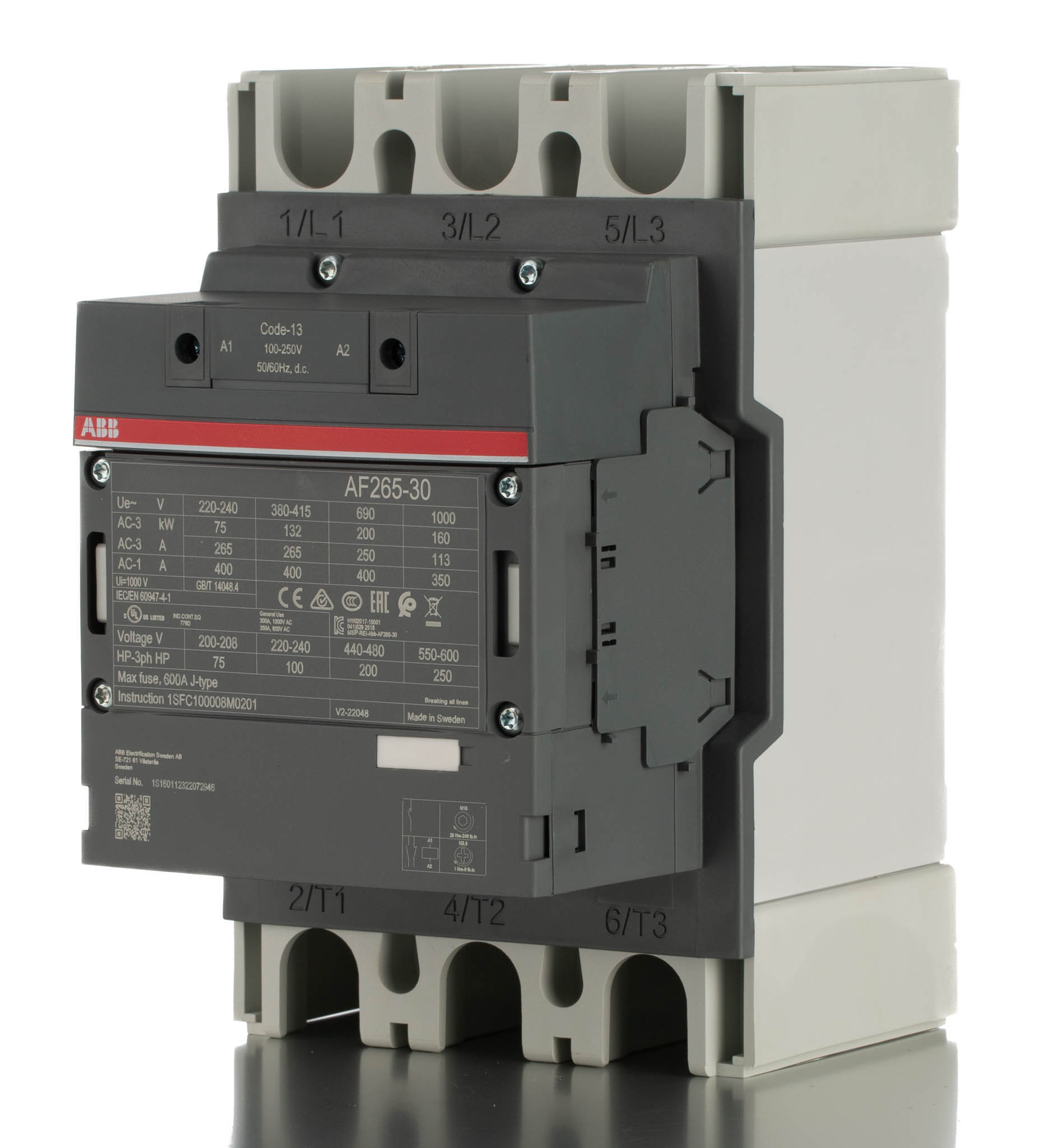 This is AF Range AF265 3 Pole Contactor - 400 A 230 V ac Coil 3NO 132 kW manufactured by ABB. The manufacturer part number is 1SFL547002R1311 AF265-30-11-13. It has a maximum operating temperature of +70°c. The rated contact current is 400 a. The product af, is a highly preferred choice for users. Whereas, the minimum operating temperature of the product is -40°c. The coil voltage of the product is 230 v ac. Its accurate length is 140mm. It has 3p pole and throw configuration. Furthermore, the product is 225mm wide. The product comes in 180mm depth. It is composed of [Number of Auxiliary Contacts] auxiliary contacts. The normal state configuration includes 3no. It features af265-30-11-13 range. Feature 132 kw of power rating. The integrated contact has 690 v ac of voltage rating. It has equipped with 3 poles. The terminal is a lug ring terminal type.