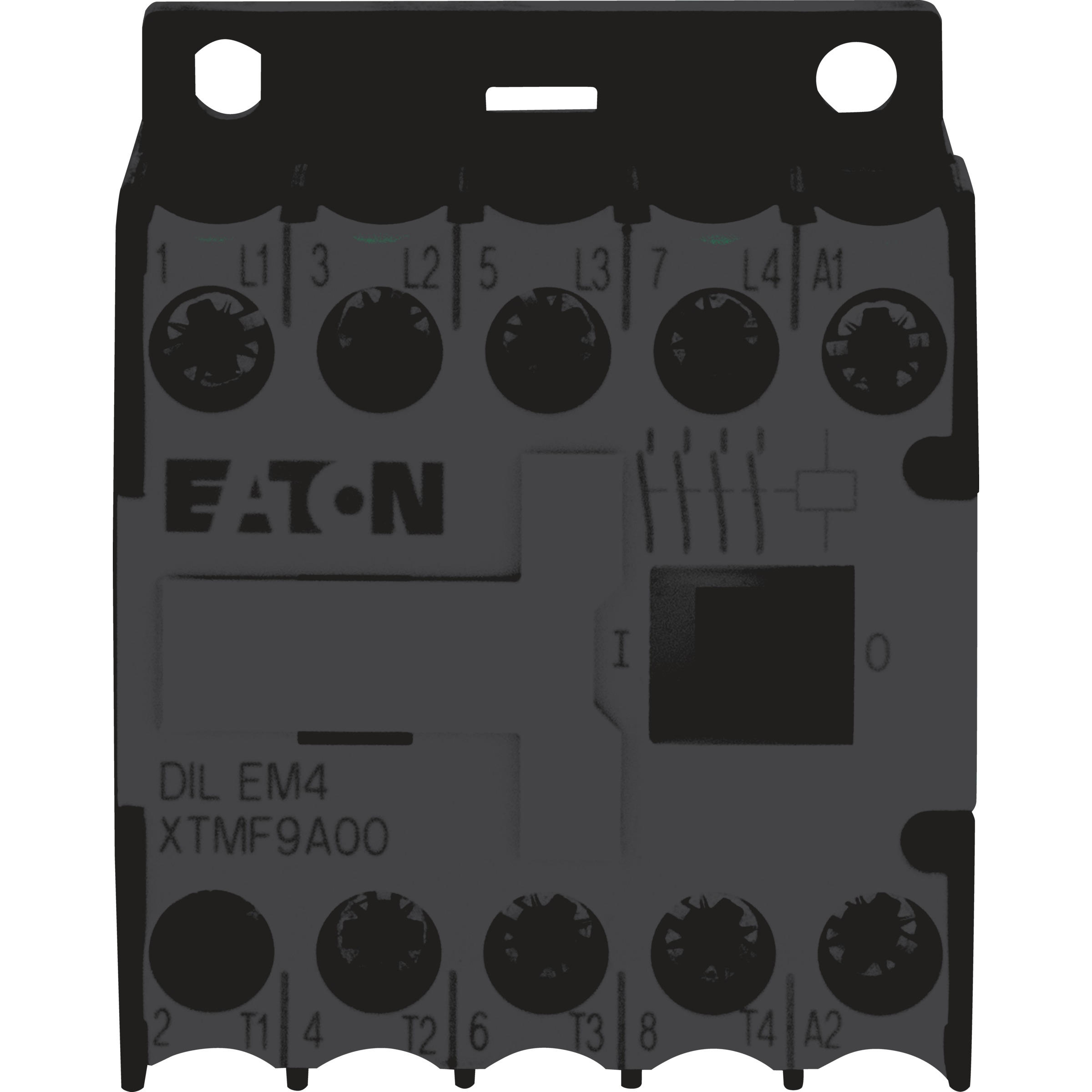 This is xStart DILEM 4 Pole Contactor - 9 A 24 V dc Coil 4NO 4 kW manufactured by Eaton. The manufacturer part number is 012701 DILEM4-G(24VDC). The normal state configuration includes 4no. The rated contact current is 9 a. It has a maximum operating temperature of +40°c. It has 24 v dc control voltage . The coil voltage of the product is 24 v dc. Its accurate length is 58mm. It has 4p pole and throw configuration. The product is available in din rail mount style. Furthermore, the product is 45mm wide. The product comes in 83mm depth. It is composed of [Number of Auxiliary Contacts] auxiliary contacts. Whereas, the minimum operating temperature of the product is -25°c. It features xstart range. Feature 4 kw of power rating. The integrated contact has 400 v ac of voltage rating. It has equipped with 4 poles. The terminal is a screw type.