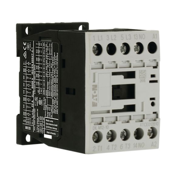 This is xStart DILM 3 Pole Contactor - 12 A 230 V ac Coil 3NO 5.5 kW manufactured by Eaton. The manufacturer part number is 276830 DILM12-10(230V50HZ,240V60HZ). It performs basic function of reversing. The normal state configuration includes 3no. The rated contact current is 12 a. It has a maximum operating temperature of +60°c. It has 230 v, 240 v control voltage . The coil voltage of the product is 230 v ac. Its accurate length is 68mm. It has 3p pole and throw configuration. Furthermore, the product is 45mm wide. The product comes in 125.2mm depth. It is composed of [Number of Auxiliary Contacts] auxiliary contacts. Whereas, the minimum operating temperature of the product is -25°c. It features xstart range. In addition, it has a standard 1nc auxiliary contact configuration . Feature 5.5 kw of power rating. The integrated contact has 400 v ac of voltage rating. It has equipped with 3 poles. The terminal is a screw type.