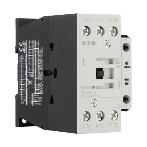 This is xStart DILM 3 Pole Contactor - 25 A 230 V ac Coil 3NO 11 kW manufactured by Eaton. The manufacturer part number is 277132 DILM25-10(230V50HZ,240V60HZ). It performs basic function of reversing. The normal state configuration includes 3no. The rated contact current is 25 a. It has a maximum operating temperature of +40°c. It has 230 v, 240 v control voltage . The coil voltage of the product is 230 v ac. Its accurate length is 85mm. It has 3p pole and throw configuration. Furthermore, the product is 56mm wide. The product comes in 138mm depth. It is composed of [Number of Auxiliary Contacts] auxiliary contacts. Whereas, the minimum operating temperature of the product is -25°c. It features xstart range. In addition, it has a standard 1no auxiliary contact configuration . Feature 11 kw of power rating. The integrated contact has 400 v ac of voltage rating. It has equipped with 3 poles. The terminal is a screw type.