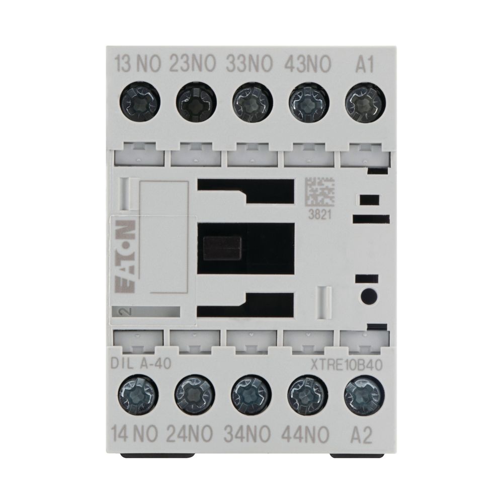 This is Contactor Relay - 4NO 4 A Contact Rating xStart manufactured by Eaton. The manufacturer part number is 276316 DILA-40(24V50HZ). It has a maximum operating temperature of +60°c. The normal state configuration includes 4no. The rated contact current is 4 a. The product dila, is a highly preferred choice for users. It has 24 v ac control voltage . The coil voltage of the product is 24 v ac. Its accurate length is 75mm. It has 4p pole and throw configuration. The product is available in din rail mount style. Furthermore, the product is 45mm wide. The product comes in 75mm depth. It is composed of [Number of Auxiliary Contacts] auxiliary contacts. Whereas, the minimum operating temperature of the product is -25°c. It features xstart range. The integrated contact has 415 v ac of voltage rating. It has equipped with 4 poles. The terminal is a screw type.