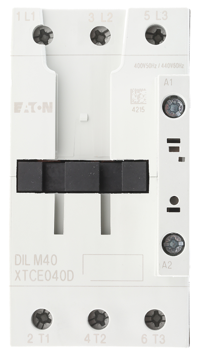 This is xStart DILM 3 Pole Contactor - 40 A 400 V ac Coil 3NO 18.5 kW manufactured by Eaton. The manufacturer part number is 277768 DILM40(400V50HZ,440V60HZ). The coil voltage of the product is 400 v ac. It has 3p pole and throw configuration. Furthermore, the product is 77 mm wide. It performs basic function of motor control, resistive load. contactor is a versatile product designed to provide user-defined applications. It has a maximum operating temperature of 45°c. The terminal is a screw type. The normal state configuration includes 3 no. Its accurate length is 115mm. In addition, it has a standard 1 no auxiliary contact configuration . It has a surface type mount . The product dilm, is a highly preferred choice for users. The product comes in 147mm depth. Whereas, the minimum operating temperature of the product is -25°c. Moreover, it has about 400v contact voltage . Feature 18.5kw of power rating. It has equipped with 3 poles.
