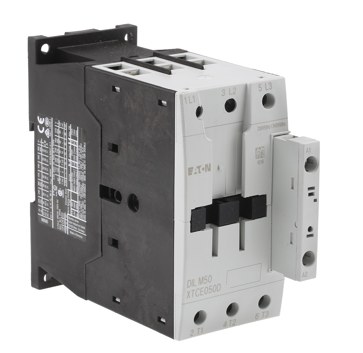 This is xStart DILM 3 Pole Contactor - 50 A 230 V ac Coil 3NO 22 kW manufactured by Eaton. The manufacturer part number is 277838 DILM50(230V50/60HZ). The coil voltage of the product is 230 v ac. It has 3 pole and throw configuration. Furthermore, the product is 77 mm wide. It performs basic function of motor control, resistive load. contactor is a versatile product designed to provide user-defined applications. It has a maximum operating temperature of 45°c. The terminal is a screw clamp type. Its accurate length is 115mm. In addition, it has a standard 1 no auxiliary contact configuration . It has a surface type mount . The product dilm, is a highly preferred choice for users. The product comes in 147mm depth. The normal state configuration includes 3 no. Moreover, it has about 400v contact voltage . Feature 22kw of power rating. It has equipped with 3 poles. Whereas, the minimum operating temperature of the product is -25°c.