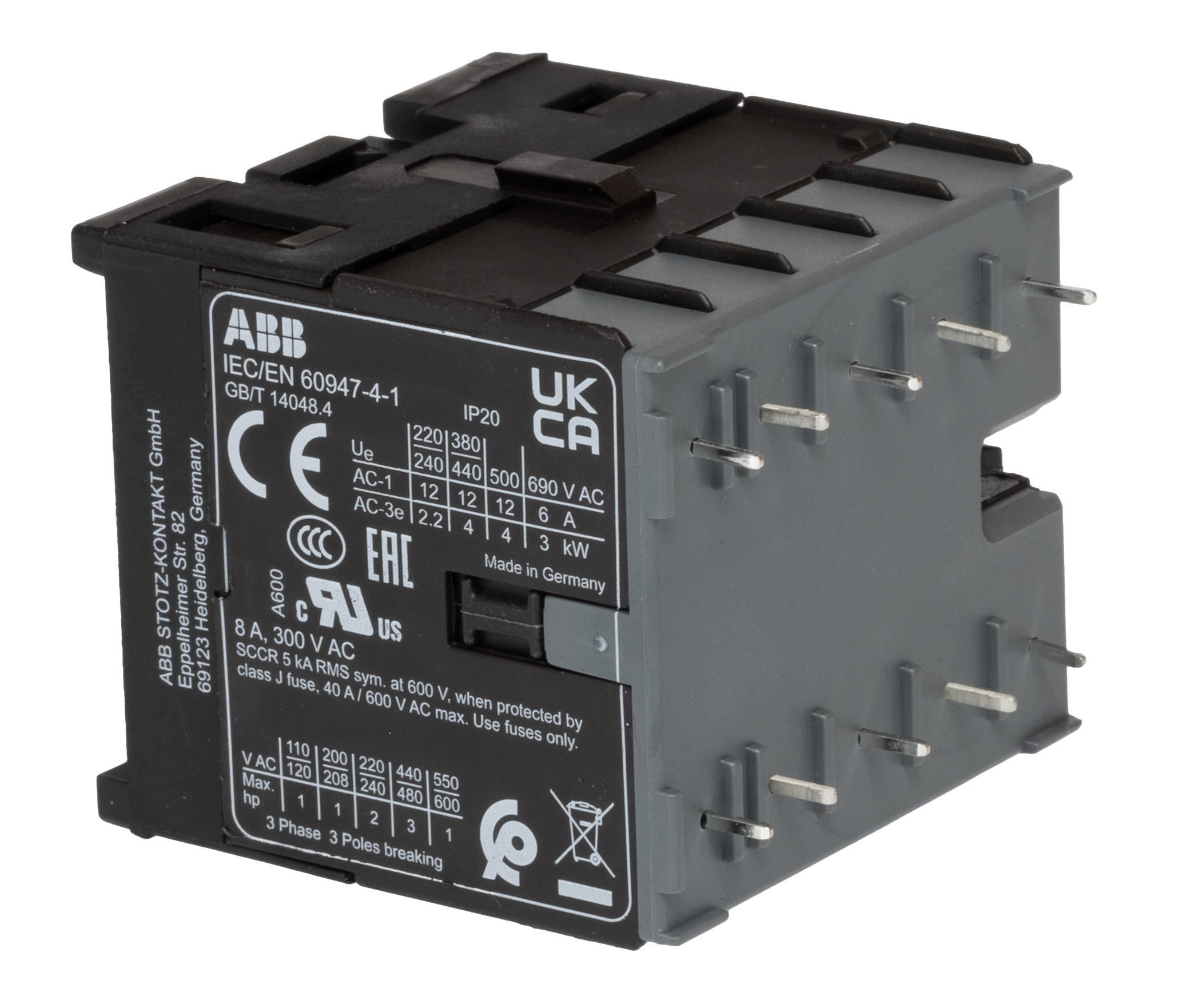 This is B6 3 Pole Contactor - 12 A 220 → 240 V Coil 3NO 4 kW manufactured by ABB. The manufacturer part number is GJL1211009R8100 B6-30-10-P 220-240V AC. Whereas, the minimum operating temperature of the product is -25°c. The rated contact current is 12 a. The product b6, is a highly preferred choice for users. It has 220 → 240 v ac control voltage . The coil voltage of the product is 220 → 240 v. Its accurate length is 47.7mm. The product is available in din rail style. Furthermore, the product is 47.5mm wide. The product comes in 45.2mm depth. It is composed of [Number of Auxiliary Contacts] auxiliary contacts. The normal state configuration includes 3no. It features b6-30-10-p range. In addition, it has a standard 1no auxiliary contact configuration . Feature 4 kw of power rating. It has a maximum operating temperature of +55°c. It has equipped with 3 poles.