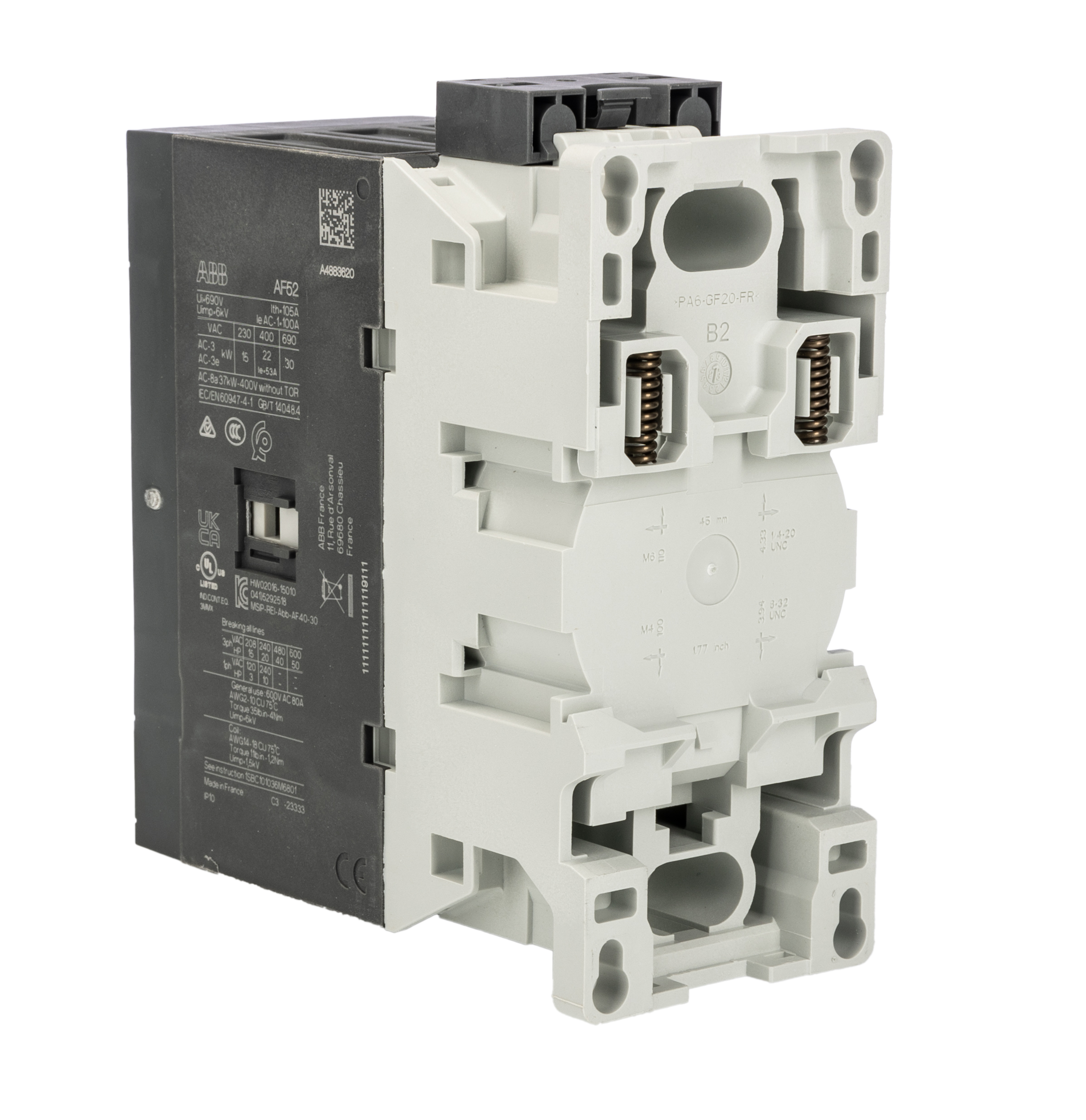 This is AF52-30-00-14 AF Contactor 250 → 500 V Coil 3 Pole 80 A 22 kW 3NO manufactured by ABB. The manufacturer part number is 1SBL367001R1400 AF52-30-00-14. The coil voltage of the product is 250/500 v. It has 3 pole and throw configuration. Furthermore, the product is 67 mm wide. It performs basic function of motor control. contactor is a versatile product designed to provide user-defined applications. It has a maximum operating temperature of 70°c. The terminal is a screw type. The normal state configuration includes 3 no. Its accurate length is 125.5mm. It has a front type mount . The product af, is a highly preferred choice for users. The product comes in 111mm depth. Whereas, the minimum operating temperature of the product is -40°c. In addition, it has a standard 1 no/1 nc auxiliary contact configuration . Feature 22kw of power rating. It has equipped with 3 poles.