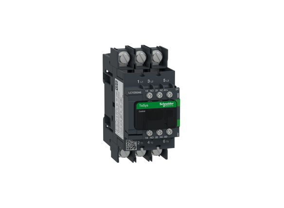 This is TeSys D LC1D Contactor 3 Pole 50 A 1 NO + 1 NC manufactured by Schneider Electric. The manufacturer part number is LC1D50A6BBE. It performs basic function of changeover contactor. Better World Verification Options - green premium. Is it a better world product? yes. The normal state configuration includes 1 no + 1 nc. The rated contact current is 50 a. The product lc1d, is a highly preferred choice for users. It features tesys d range. It has equipped with 3 poles.