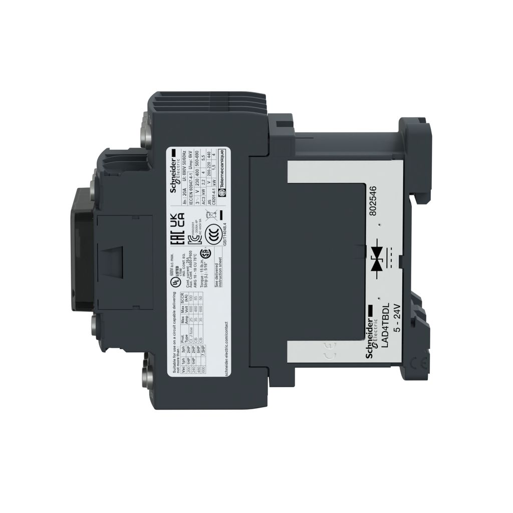 This is TeSys D LC1D Contactor 24 V Coil 4 Pole 20 A 1 NO + 1 NC manufactured by Schneider Electric. The manufacturer part number is LC1DT206BD. It performs basic function of changeover contactor. Better World Verification Options - green premium. Is it a better world product? yes. The normal state configuration includes 1 no + 1 nc. The rated contact current is 20 a. The product lc1d, is a highly preferred choice for users. The coil voltage of the product is 24 v. It features tesys d range. It has equipped with 4 poles. The coil voltage of the product is 24vdc. Moreover, it has box lug terminal style. The product has -40°c ~ 70°c operating temperature range. The product's switching voltage is 690vac, 300vdc - max. On the other hand, 16.8 vdc is the given crucial/must operating voltage. The schneider electric's product offers user-desired applications. It also has a 4pst-no (4 form a) contact form. The operating time of the product is 72.45 ms. While the must release voltage is a 2.4 vdc. It has a long 5 weeks standard lead time. It has a contact current rating of 20 a. The splendid features of the product include auxiliary contacts, diode. The product is available in chassis mount, din rail configuration. The product tesys, is a highly preferred choice for users. While 24 ms is its release time. In addition, box is the available packaging type of the product.