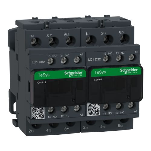 This is TeSys D LC2D Reversing Contactor 3 Pole 32 A 1 NO + 1 NC manufactured by Schneider Electric. The manufacturer part number is LC2D32P7V. It performs basic function of reversing. Better World Verification Options - green premium. Is it a better world product? yes. The normal state configuration includes 1 no + 1 nc. The rated contact current is 32 a. The product lc2d, is a highly preferred choice for users. It features tesys d range. It has equipped with 3 poles.