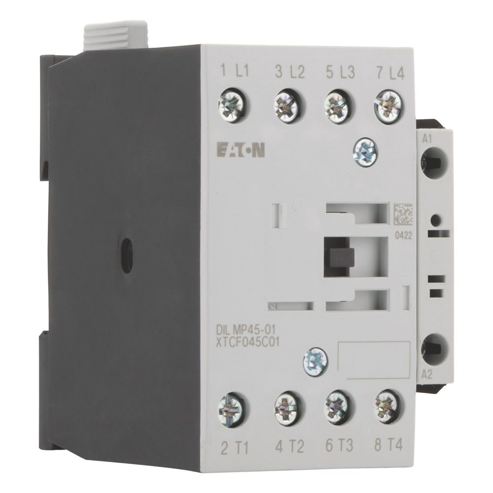 This is DILM Contactor 230 V Coil 4 Pole 14 kW 1NC manufactured by Eaton. The manufacturer part number is 118914 DILMP45-01(230V50HZ,240V60HZ). It performs basic function of reversing. Whereas, the minimum operating temperature of the product is -25°c. The rated contact current is 45 a. The product dilmp, is a highly preferred choice for users. It has 230/240 v ac control voltage . The coil voltage of the product is 230/240 v ac. Its accurate length is 97mm. It has 4p pole and throw configuration. Furthermore, the product is 58mm wide. The product comes in 97mm depth. It is composed of [Number of Auxiliary Contacts] auxiliary contacts. The normal state configuration includes 1nc. Feature 14 kw of power rating. It has a maximum operating temperature of +60°c. It has equipped with 4 poles. The terminal is a screw type.