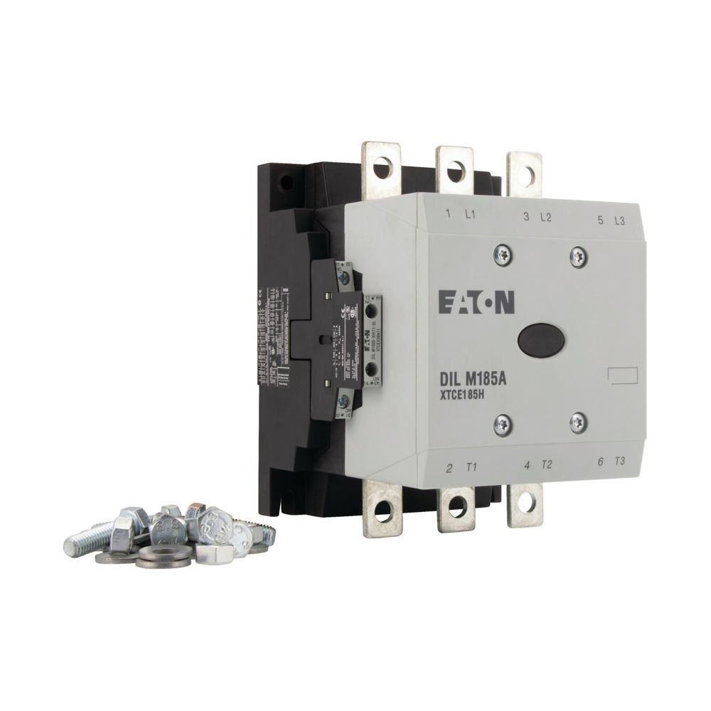 This is DILM Contactor 240 V Coil 3 Pole 140 kW manufactured by Eaton. The manufacturer part number is 139537 DILM185A/22(RAC240). It performs basic function of reversing. Whereas, the minimum operating temperature of the product is -40°c. The rated contact current is 337 a. It has a maximum operating temperature of +60°c. It has 240 v control voltage . The coil voltage of the product is 240 v. Its accurate length is 160mm. It has 3p pole and throw configuration. Furthermore, the product is 190mm wide. The product comes in 158mm depth. It is composed of [Number of Auxiliary Contacts] auxiliary contacts. The normal state configuration includes 2nc, 2no. In addition, it has a standard 2no + 2nc auxiliary contact configuration . Feature 90 kw of power rating. The integrated contact has 400 v of voltage rating. It has equipped with 3 poles. The terminal is a screw type.