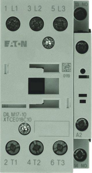 This is DILM Contactor 220 V ac 230 V ac Coil 3 Pole 11 kW 1N/O manufactured by Eaton. The manufacturer part number is 277014 DILM17-10(TVC100). It performs basic function of reversing. The product dilm, is a highly preferred choice for users. The coil voltage of the product is 220 v ac, 230 v dc. The normal state configuration includes 1n/o. Feature 11 kw of power rating. It has equipped with 3 poles.