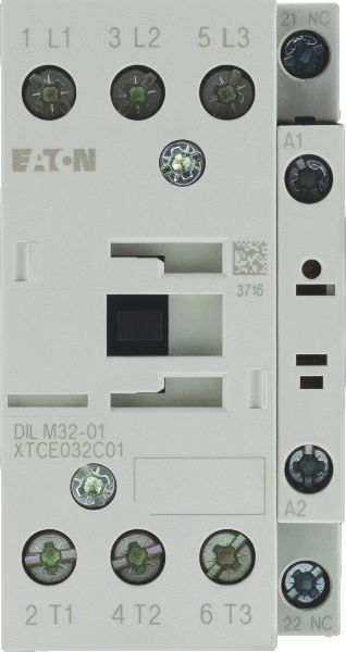 This is DILM Contactor 240 V Coil 3 Pole 17 kW 1NC manufactured by Eaton. The manufacturer part number is 277281 DILM32-01(240V50HZ). It performs basic function of reversing. The product dilm, is a highly preferred choice for users. The coil voltage of the product is 240 v. The normal state configuration includes 1nc. Feature 17 kw of power rating. It has equipped with 3 poles.