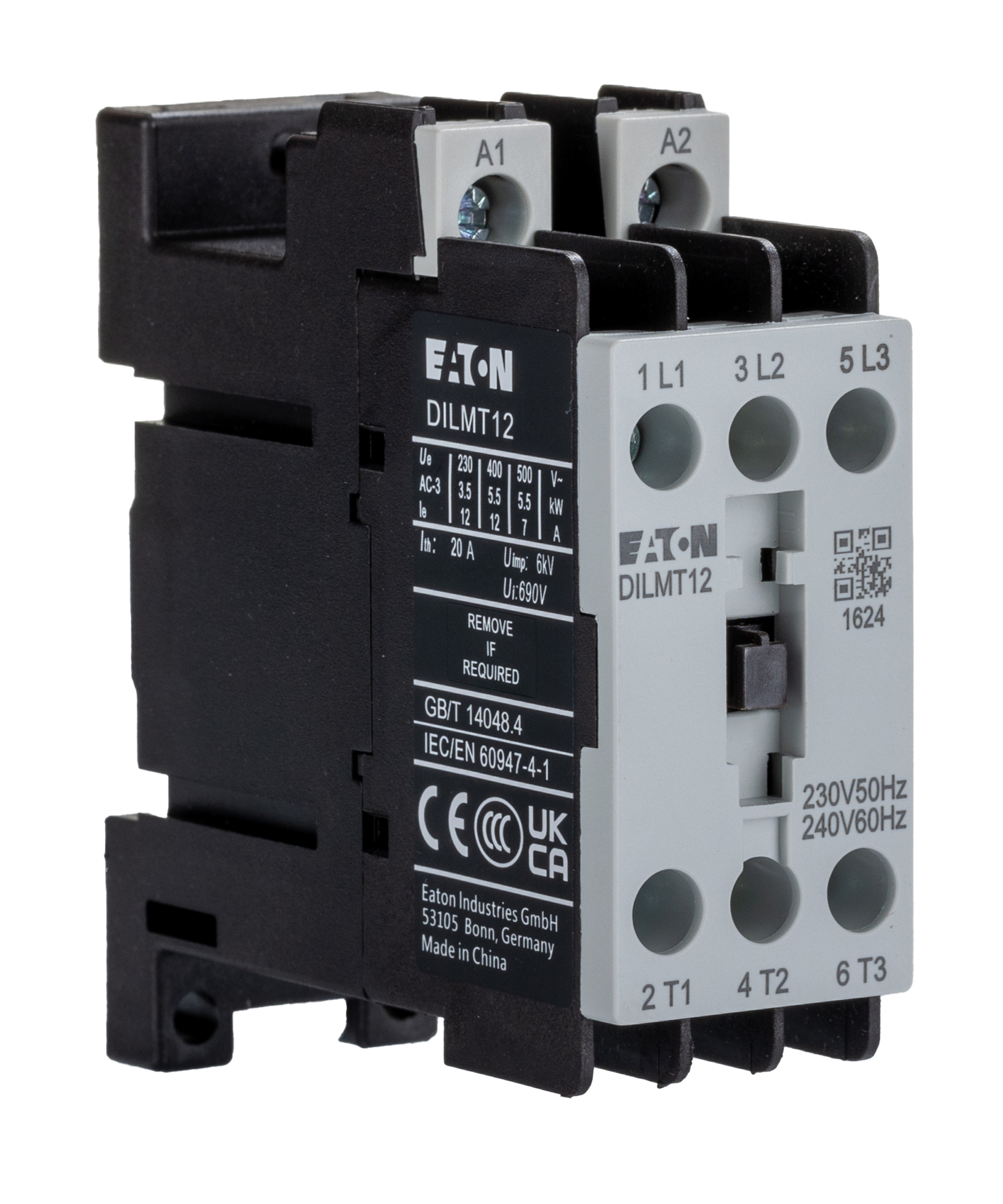 This is Contactor 240 V ac Coil 3-Pole 12 A 5.5 kW 3NO manufactured by Eaton. The manufacturer part number is 190996 DILMT12(230V50HZ/240V60HZ). Whereas, the minimum operating temperature of the product is -25°c. The rated contact current is 12 a. The product dilmt, is a highly preferred choice for users. It has 230/240 v ac control voltage . The coil voltage of the product is 230/240 v ac. Its accurate length is 77.5mm. It has 3p pole and throw configuration. Furthermore, the product is 27mm wide. The product comes in 77.5mm depth. It is composed of [Number of Auxiliary Contacts] auxiliary contacts. The normal state configuration includes 3no. Feature 5.5 kw of power rating. It has a maximum operating temperature of +55°c. It has equipped with 3 poles. The terminal is a screw type.