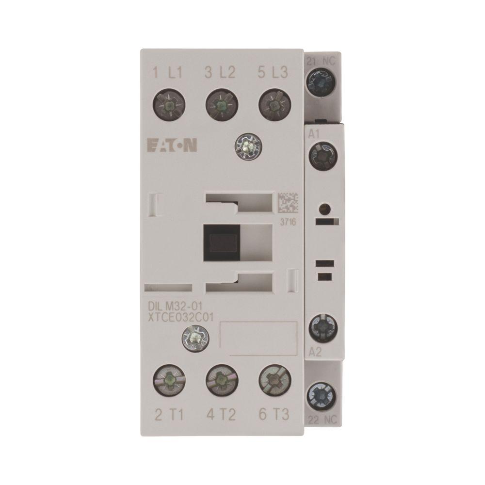 This is DILM Contactor 230 V ac Coil 3-Pole 170 A 15 kW 1 NC 400 V manufactured by Eaton. The manufacturer part number is 277300 DILM32-01(230V50/60HZ). It performs basic function of reversing. It has a maximum operating temperature of +60°c. The rated contact current is 170 a. The product eaton moeller, is a highly preferred choice for users. Whereas, the minimum operating temperature of the product is -25°c. The coil voltage of the product is 230 v ac. Its accurate length is 97mm. It has 3p pole and throw configuration. Furthermore, the product is 45mm wide. The product comes in 97mm depth. It is composed of [Number of Auxiliary Contacts] auxiliary contacts. The normal state configuration includes 1 nc. It features dilm range. In addition, it has a standard 1nc auxiliary contact configuration . Feature 15 kw of power rating. The integrated contact has 400 v of voltage rating. It has equipped with 3 poles. The terminal is a screw type.