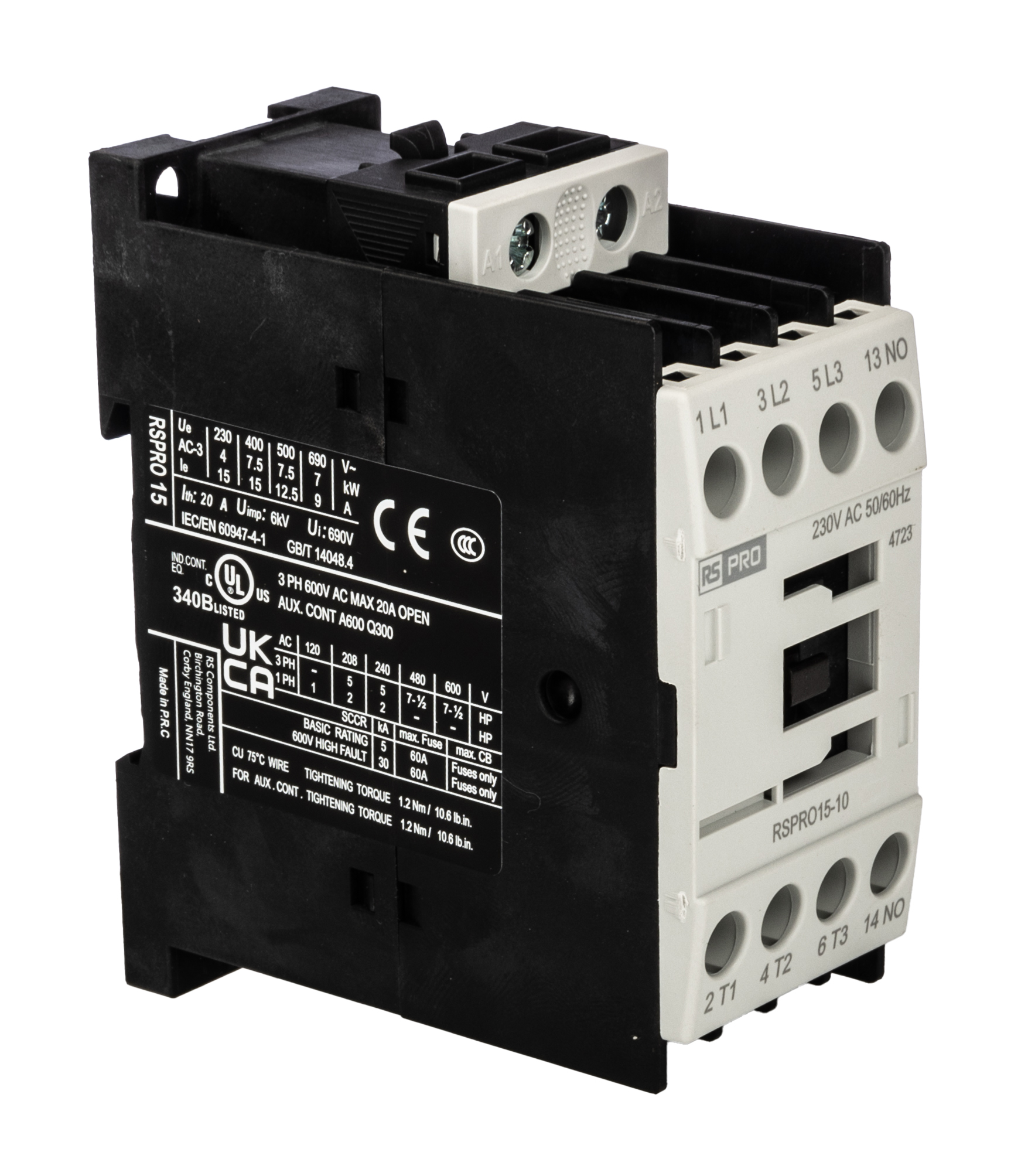 This is RSPRO15-10 Contactor 230 V AC Coil 3-Pole 15 A 7.5 kW 1NO 690 V manufactured by RS PRO. The manufacturer part number is 250-8799. It performs basic function of electromechanical. Whereas, the minimum operating temperature of the product is -25°c. It has a typical 15a load current. The rated contact current is 15 a. It has a maximum operating temperature of 60°c. It has 230v 50/60hz control voltage . The coil voltage of the product is 230 v ac. Its accurate length is 89mm. The product is available in din rail style. Furthermore, the product is 36mm wide. The product comes in 74mm depth. It is composed of [Number of Auxiliary Contacts] auxiliary contacts. The normal state configuration includes 1no. It features rspro15-10 range. In addition, it has a standard 1no auxiliary contact configuration . Feature 7.5 kw of power rating. The integrated contact has 690 v of voltage rating. It has equipped with 3 poles. The terminal is a screw type.