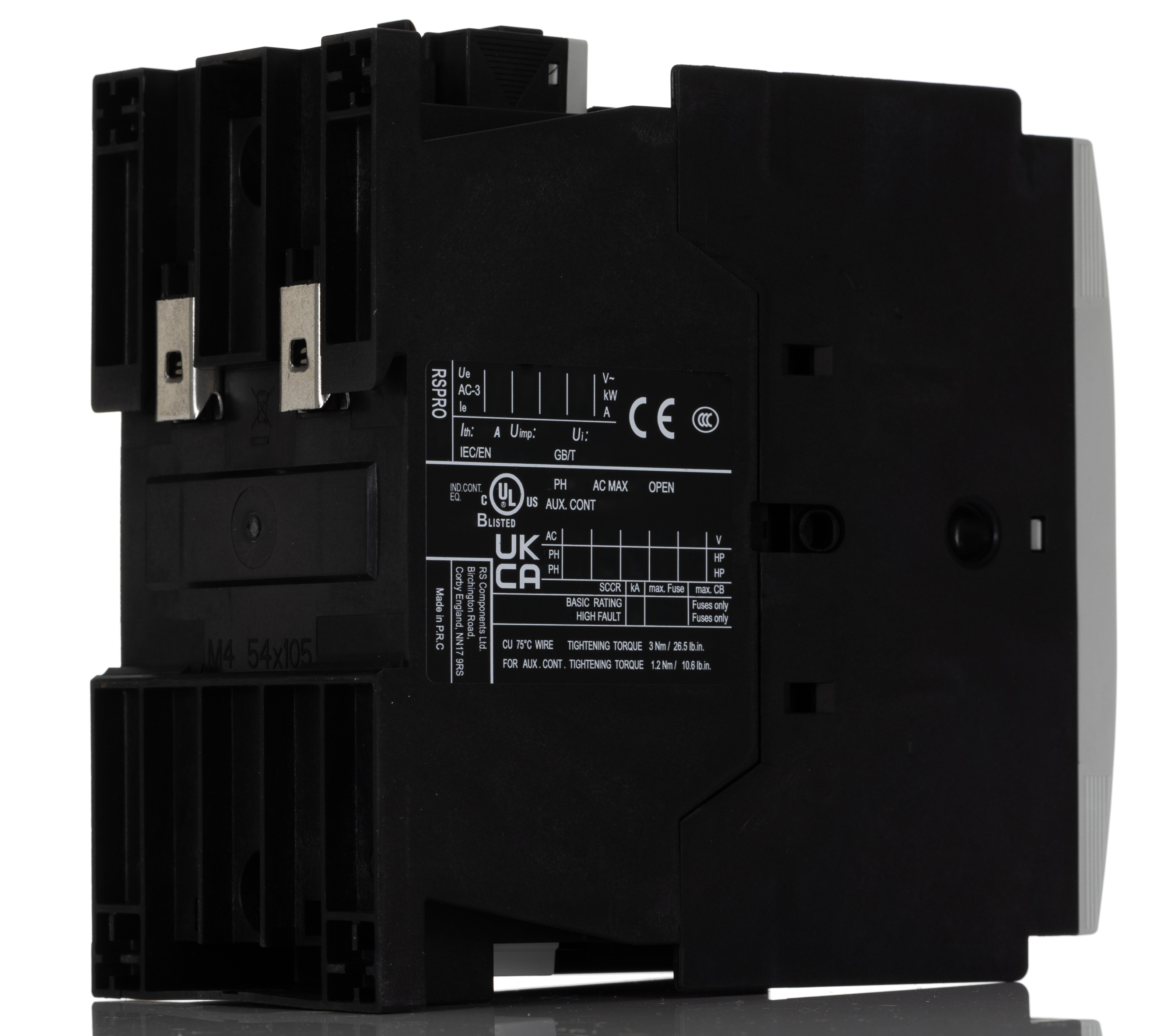This is RSPRO72-11 Contactor 24 V DC Coil 3-Pole 72 A 37 kW 1NO/1NC 690 V manufactured by RS PRO. The manufacturer part number is 250-8845. The coil voltage of the product is 24 v dc. It has 3 pole and throw configuration. Furthermore, the product is 64 mm wide. It performs basic function of electromechanical. contactor is a versatile product designed to provide user-defined applications. It has a maximum operating temperature of 60°c. The terminal is a screw type. The normal state configuration includes 1 no/1 nc. Its accurate length is 120mm. Moreover, it has about 690v contact voltage . It has a din rail type mount . The product comes in 114mm depth. Whereas, the minimum operating temperature of the product is -25°c. In addition, it has a standard 1 no/1 nc auxiliary contact configuration . Feature 37kw of power rating. It has equipped with 3 poles.
