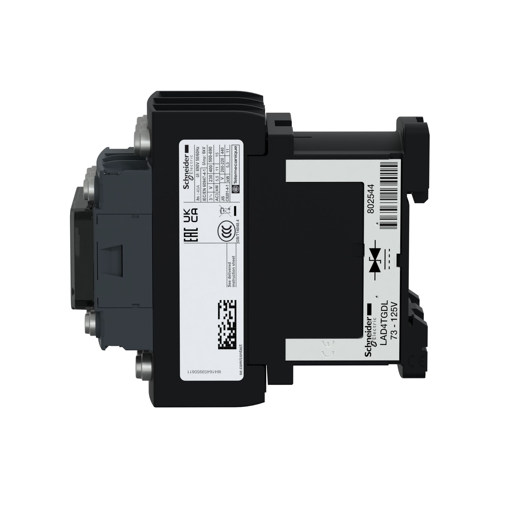 This is TeSys Deca LC1D Contactor 72 V dc Coil 3-Pole 25 A 11 kW 3NO 440 V manufactured by Schneider Electric. The manufacturer part number is LC1D256SLXS207. The coil voltage of the product is 72 v dc. It has 3 no pole and throw configuration. Furthermore, the product is 45 mm wide. It performs basic function of resistive load. contactor is a versatile product designed to provide user-defined applications. It has a maximum operating temperature of 80°c. The terminal is a lug ring terminal type. Its accurate length is 101mm. In addition, it has a standard 1 no/1 nc auxiliary contact configuration . It has a rail type mount . The product tesys deca, is a highly preferred choice for users. The product comes in 101mm depth. The normal state configuration includes 3 no. Moreover, it has about 440v contact voltage . Feature 11kw of power rating. It has equipped with 3 poles. Whereas, the minimum operating temperature of the product is -60°c.
