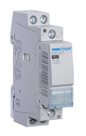 This is System M Pro ESC Contactor 24 V ac Coil 2-Pole 25 A 1.9 kW 1NO + 1NC 230 V ac manufactured by Hager. The manufacturer part number is ESD227. It has a maximum operating temperature of +50°c. The rated contact current is 25 a. The product esc, is a highly preferred choice for users. Whereas, the minimum operating temperature of the product is -10°c. The coil voltage of the product is 24 v ac. The product is available in din rail mount style. It features system m pro range. The normal state configuration includes 1no + 1nc. Feature 1.9 kw of power rating. The integrated contact has 230 v ac of voltage rating. It has equipped with 2 poles. The terminal is a screw type.