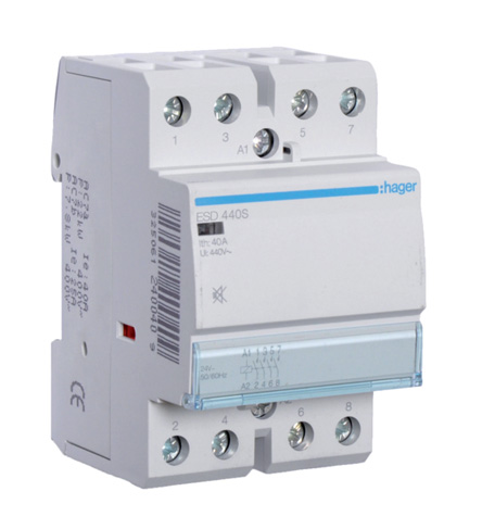 This is System M Pro ESC Contactor 24 V ac Coil 4-Pole 40 A 4NO 400 V ac manufactured by Hager. The manufacturer part number is ESD440S. It has a maximum operating temperature of +50°c. The rated contact current is 40 a. The product esc, is a highly preferred choice for users. Whereas, the minimum operating temperature of the product is -10°c. The coil voltage of the product is 24 v ac. The product is available in din rail mount style. It features system m pro range. The normal state configuration includes 4no. The integrated contact has 400 v ac of voltage rating. It has equipped with 4 poles. The terminal is a screw type.