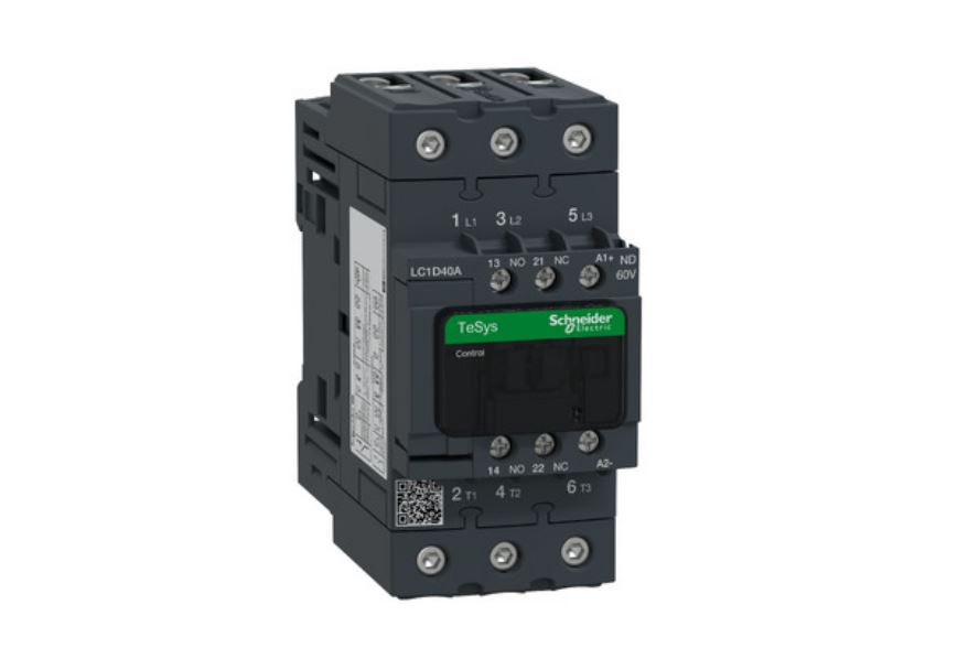 This is TeSys LC1D Contactor 60 V Coil 3P-Pole 60 A 30 kW 3NO 690 V manufactured by Schneider Electric. The manufacturer part number is LC1D40AND. The rated contact current is 60 a. The product lc1d, is a highly preferred choice for users. The coil voltage of the product is 60 v. It features tesys range. The normal state configuration includes 3no. Feature 30 kw of power rating. The integrated contact has 690 v of voltage rating. It has equipped with 3p poles.