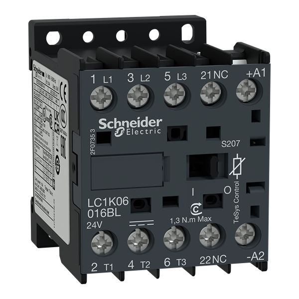 This is TeSys LC1K Contactor 24 V Coil 3-Pole 9 A 2.2 kW 3NO 24 V manufactured by Schneider Electric. The manufacturer part number is LC1K09016BLS207. The normal state configuration includes 3no. The rated contact current is 9 a. The product tesys k, is a highly preferred choice for users. The coil voltage of the product is 24 v. It features tesys range. Feature 2.2 kw of power rating. The integrated contact has 24 v of voltage rating. It has equipped with 3 poles.