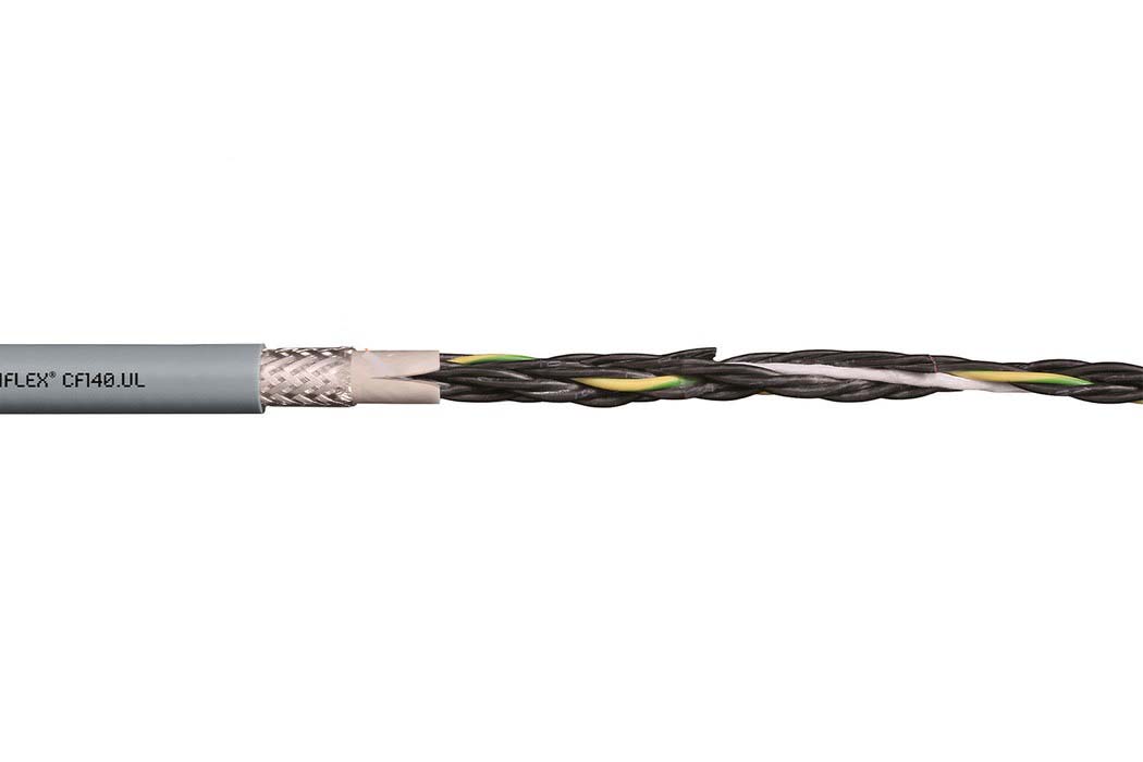 This is 3 Core Screened Grey PVC Industrial Cable 1 mm² CSA manufactured by Igus. The manufacturer part number is CF140.10.03.UL. Screen Options - screened. It has an earth cable included yes . The conductor has 19.5 ω/km resistance. Additionally, it is oil resistant no . Features 17 awg - American Wire Gauge. The product consists of 3 cores. Its outer diameter is 8.5mm. The sheath is constructed from durable and adorable pvc material. Moreover, this cable has a multicore shape. It has a maximum operating temperature of +70°c. It has a drain wire included no . Moreover, the product has a nominal 500 v voltage rating. It bears 15 x diameter of minimum bend radius. The product has a flame retardant fire behaviour. It is armoured no . Its accurate length is 10m. The product has a current rating of 15 a. It has a/an tinned copper braid type screen . The conductor is made from bare copper material. The product chainflex cf140.ul, is a highly preferred choice for users. The sheath has an adorable grey colour. The product has 1 mm² cross section area. Whereas, the minimum operating temperature of the product is -5°c. It has a robust tpe insulation material.