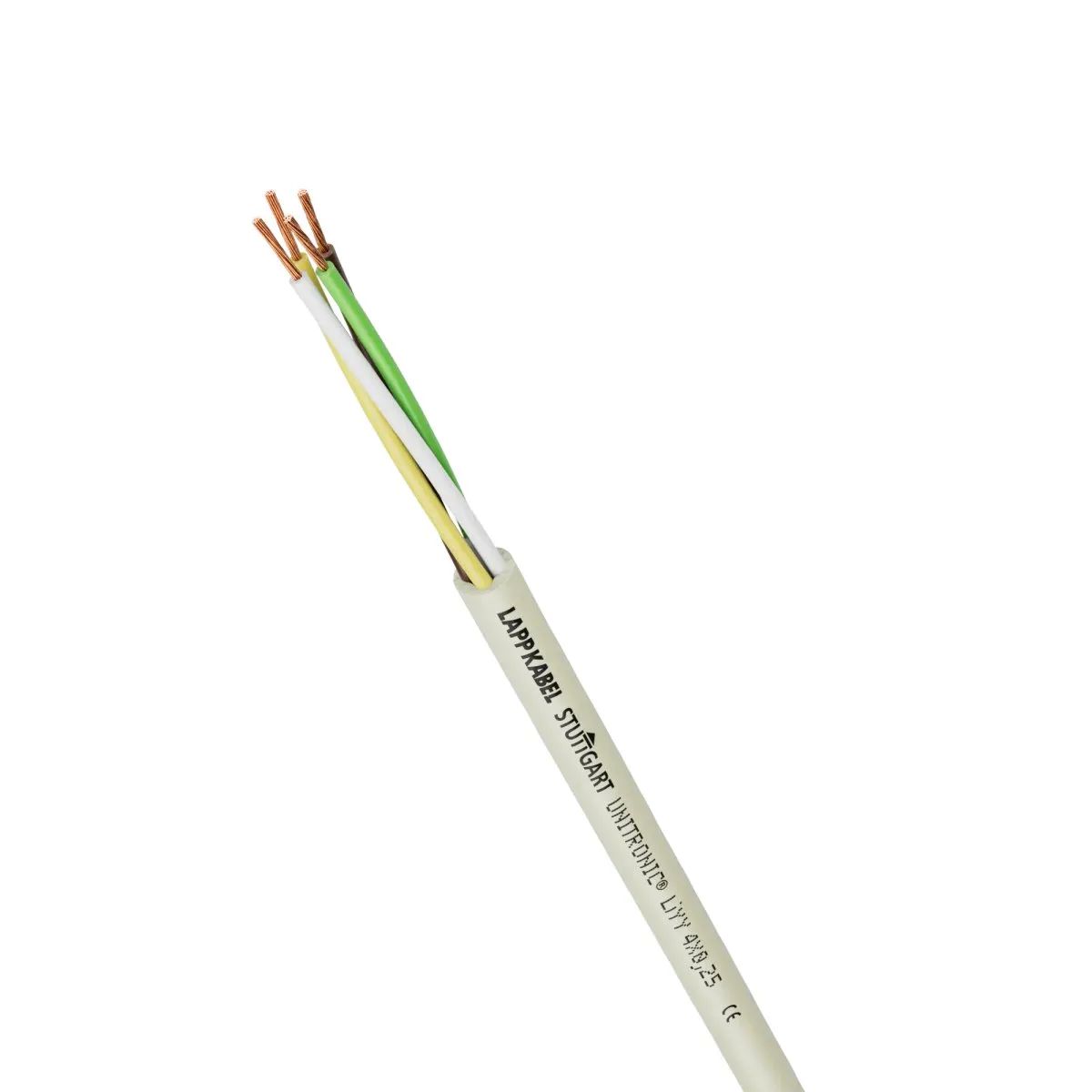 This is UNITRONIC LiYY 3 Core YY Control Cable 0.75 mm² 100m Unscreened manufactured by Lapp. The manufacturer part number is 0028603-100. Features 18 awg - American Wire Gauge. It has an earth cable included no . The conductor has 26 ω/km resistance. Additionally, it is oil resistant yes . Screen Options - unscreened. The product consists of 3 cores. Its outer diameter is 5.6mm. The sheath is constructed from durable and adorable pvc material. The core strands are 24/0.20 mm. It has a maximum operating temperature of +80°c. The product has 0.75 mm² cross section area. Moreover, the product has a nominal 500 v voltage rating. It bears fixed - 4 x d occasional flexing - 10 x d of minimum bend radius. Its accurate length is 100m. The product has a current rating of 12 a. The conductor is made from copper material. The product unitronic liyy, is a highly preferred choice for users. The sheath has an adorable grey colour. Its filler material is non-wicking filler . Whereas, the minimum operating temperature of the product is -40°c. It has a robust pvc insulation material.