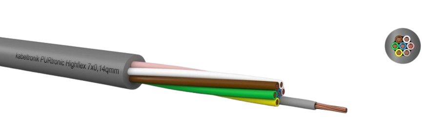 The Kabeltronik uses three cores made of copper wire, which are individually insulated and then shielded by a protective screen, ensuring that signals are transmitted without external interference. The PUR sheath offers mechanical strength, flexibility, and resistance to abrasion.