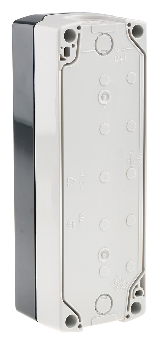 This is Harmony XALD Push Button Enclosure 5 Hole Grey 22mm diameter None Plastic manufactured by Schneider Electric. The manufacturer part number is XALD05. Better World Verification Options - green premium. Is it a better world product? yes. The given dimensions of the product include 196 x 68 x 53mm. It is IP rated with ip66, ip67, ip69(ip69k). Whereas, the minimum operating temperature of the product is -40°c. The product harmony xald, is a highly preferred choice for users. The product has -40 → 70°c of operating temperature range. Its accurate length is 196mm. It has a none enclosure marking . Furthermore, the product is 68mm wide. The product comes in 53mm depth. Additionally, it includes 5 cutouts . Its is offered with grey colour enclosure . Whereas its cut-out diameter is 22mm. It has a maximum operating temperature of +70°c. In addition, its enclosure is made up of plastic material .