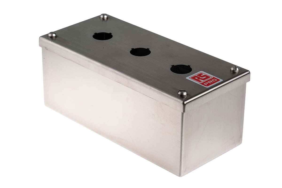 This is Push Button Enclosure 3 Hole 22.5mm diameter Stainless Steel manufactured by RS Pro. The manufacturer part number is 161-1523. It is IP rated with ip66, ip69k. Its accurate length is 100mm. Furthermore, the product is 85 mm wide. The product comes in 220mm depth. Additionally, it includes 3 cutouts . Whereas its cut-out diameter is 22mm. push button enclosure is a versatile product designed to provide user-defined applications. In addition, its enclosure is made up of stainless steel material .