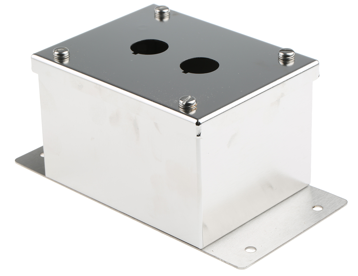 This is Grey Stainless Steel M22 Push Button Enclosure - 2 Hole 22mm Diameter manufactured by Eaton. The manufacturer part number is 118458 I2M/SS. It is IP rated with ip65. The product rmq titan, is a highly preferred choice for users. Its accurate length is 90mm. Furthermore, the product is 72mm wide. The product comes in 55mm depth. Additionally, it includes 2 cutouts . Whereas, the minimum operating temperature of the product is 0°c. Its is offered with grey colour enclosure . Whereas its cut-out diameter is 22mm. It has a maximum operating temperature of +55°c. In addition, its enclosure is made up of stainless steel material .