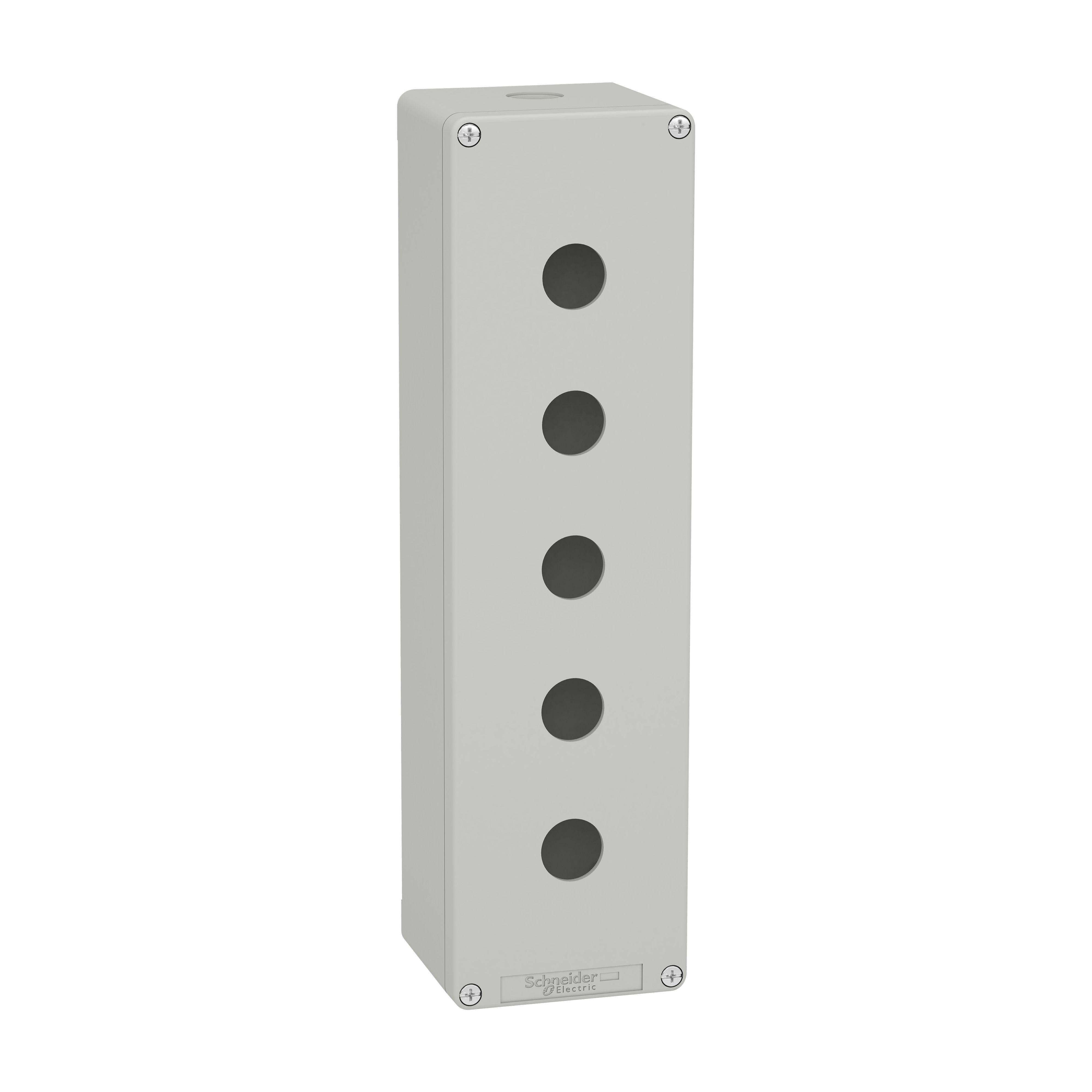 This is Grey Die Cast Aluminium XAPD Empty Control Station - 5 Hole 22mm Diameter manufactured by Schneider Electric. The manufacturer part number is XAPD5505. Its is offered with grey colour enclosure . The product xapd, is a highly preferred choice for users. Whereas its cut-out diameter is 22mm. Additionally, it includes 5 cutouts . In addition, its enclosure is made up of die cast aluminium material .