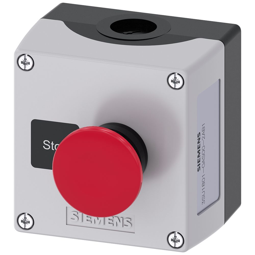 This is Black Grey Plastic 3SU1 Control Station Enclosure - 1 Hole 22mm Diameter manufactured by Siemens. The manufacturer part number is 3SU1801-0AS00-2AB1. Is it a better world product? yes. The product 3su1, is a highly preferred choice for users. It has a stop enclosure marking . Additionally, it includes 1 cutouts . Its is offered with black, grey colour enclosure . Whereas its cut-out diameter is 22mm. In addition, its enclosure is made up of plastic material .