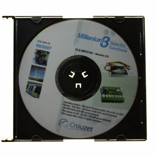 This is manufactured by Crouzet. The manufacturer part number is 88970103. It is assigned with possible HTSUS value of 8523.49.2010. The product is rohs compliant. The product millenium 3, is a highly preferred choice for users. It is a type of software accessory. In addition, it is reach unaffected. Its typical moisture sensitivity level is not applicable. In addition, bulk is the available packaging type of the product. Specifications include cd, informational software. The product is suitable for use with millenium 3 series. The crouzet's product offers user-desired applications. The product is designated with the ear99 code number.
