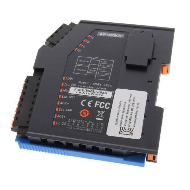 This is manufactured by Advantech Corp. The manufacturer part number is AMAX-5024-A. It is assigned with possible HTSUS value of 8537.10.9170. Number and outputs type - 6 - analog. Moreover, it has pluggable screw terminal terminal style. The product has -25°c ~ 60°c operating temperature range. It is approved by ce, fcc. The product is available in din rail configuration. It comes in output module configuration. In addition, it is reach unaffected. It is shipped in box package . It has a long 23 weeks standard lead time. It has optimum voltage supply of -10 ~ 10vdc. The product is suitable for use with amax-5000 series. The product is designated with the ear99 code number.