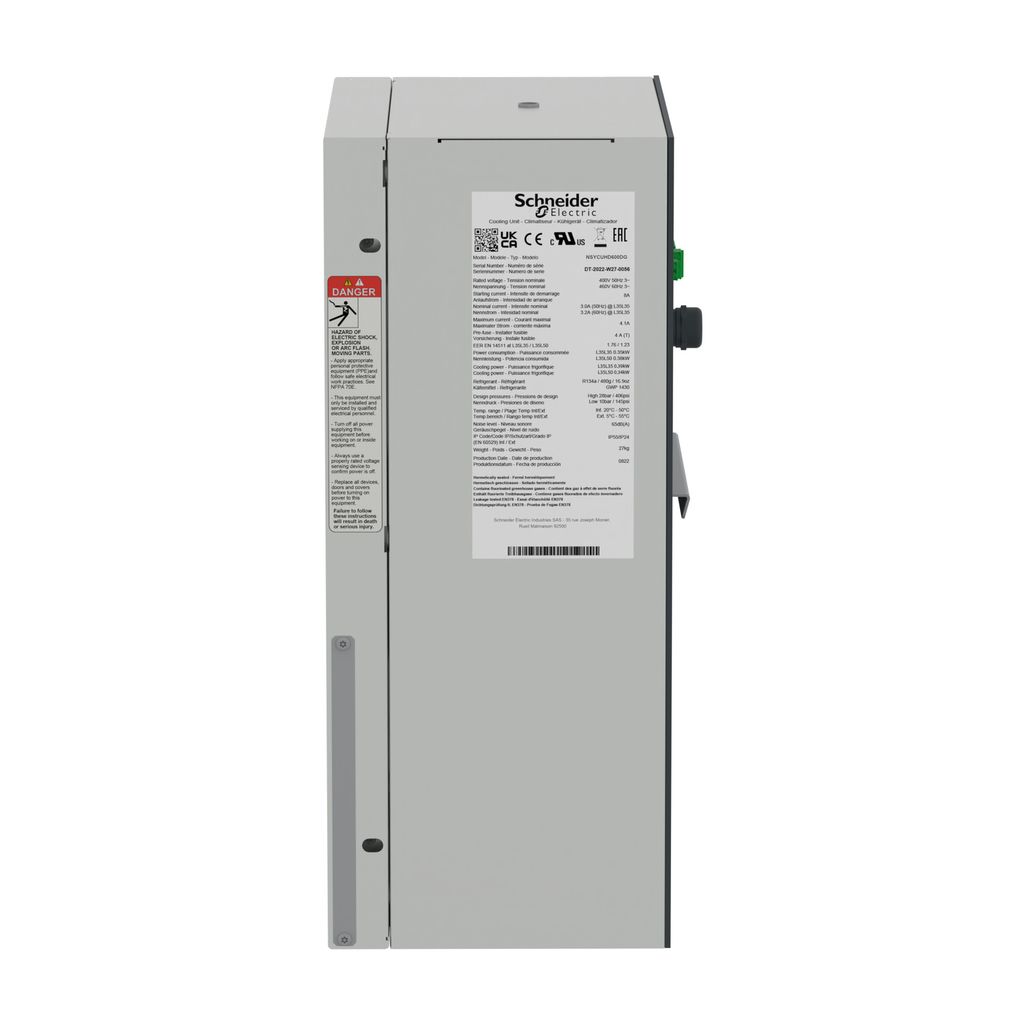 This is ClimaSys Series Enclosure Cooling Unit 650W 230V ac 117 m³/h 174 m³/h 190 x 290 x 460mm manufactured by Schneider Electric. The manufacturer part number is NSYCUHD600DG. It has a maximum 650w cooling power . The given dimensions of the product include 190 x 290 x 460mm. The product is available in side configuration. It features a noise level of 55db. It has about 650w input power rating . The product climasys, is a highly preferred choice for users. It has 117m³/h internal circuit air flow . It has a 117 m³/h, 174 m³/h air flow rate. Features 230v ac supply voltage. Its external circuit air flow is 174m³/h .